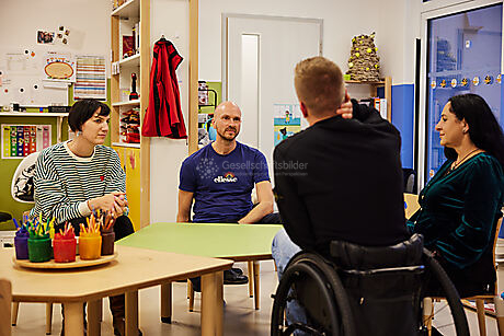 A play situation in an integrative daycare center from Kangaroo Leipzig. The photo shows the natural integration of therapeutic elements into everyday play.
